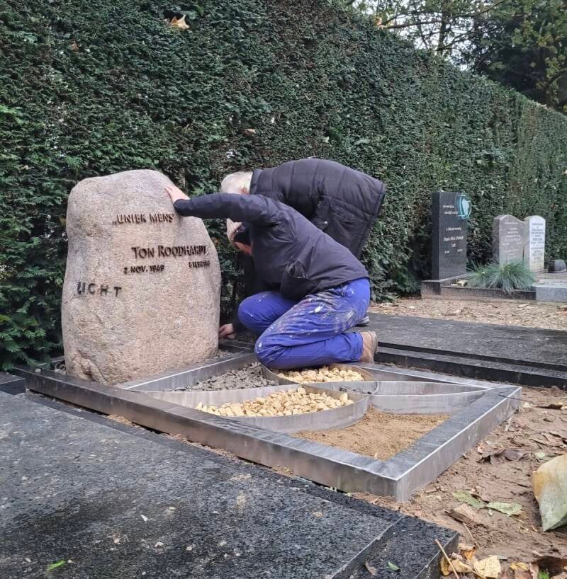 Een renovatie van een bestaand graf. Het ophogen en het vervaardigen van een nieuwe borderrand van RVS.