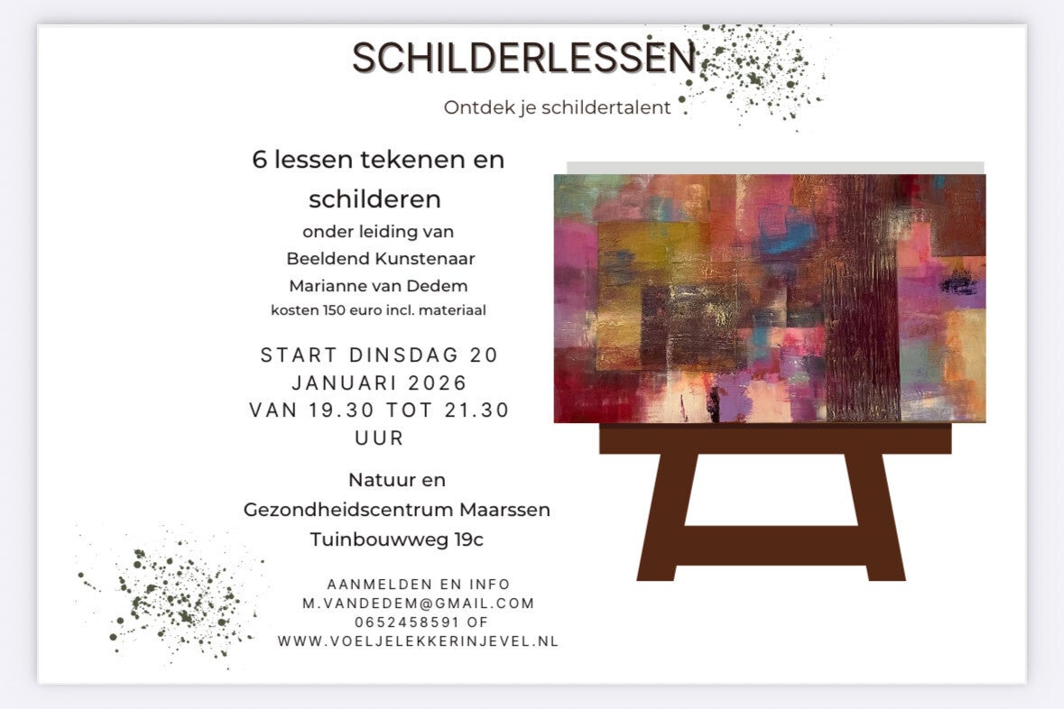 Op 20 januari start ik bij het Natuur en Gezondheidscentrum ook 6 lessen in tekenen en schilderen. Voor deze lessen kun je je ook al aanmelden via onderstaande link!